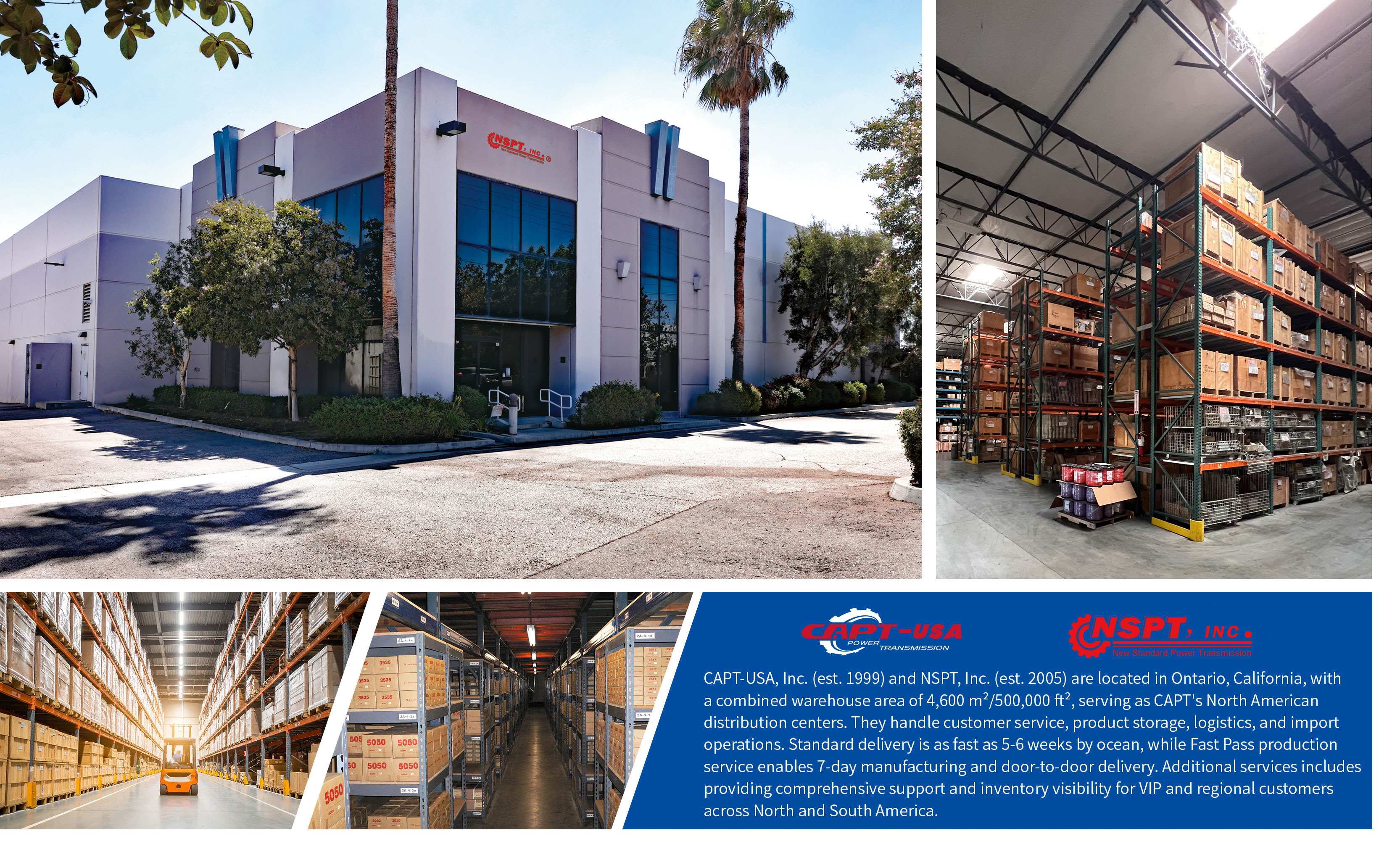 "NSPT-USA, Inc.": Established in 2005 as Shijiazhuang CAPT's North American distributor, it's a rapidly expanding professional distributor within the mechanical power transmission industry. Responsible for purchasing, inventory management, and sales in the United States and Canada.