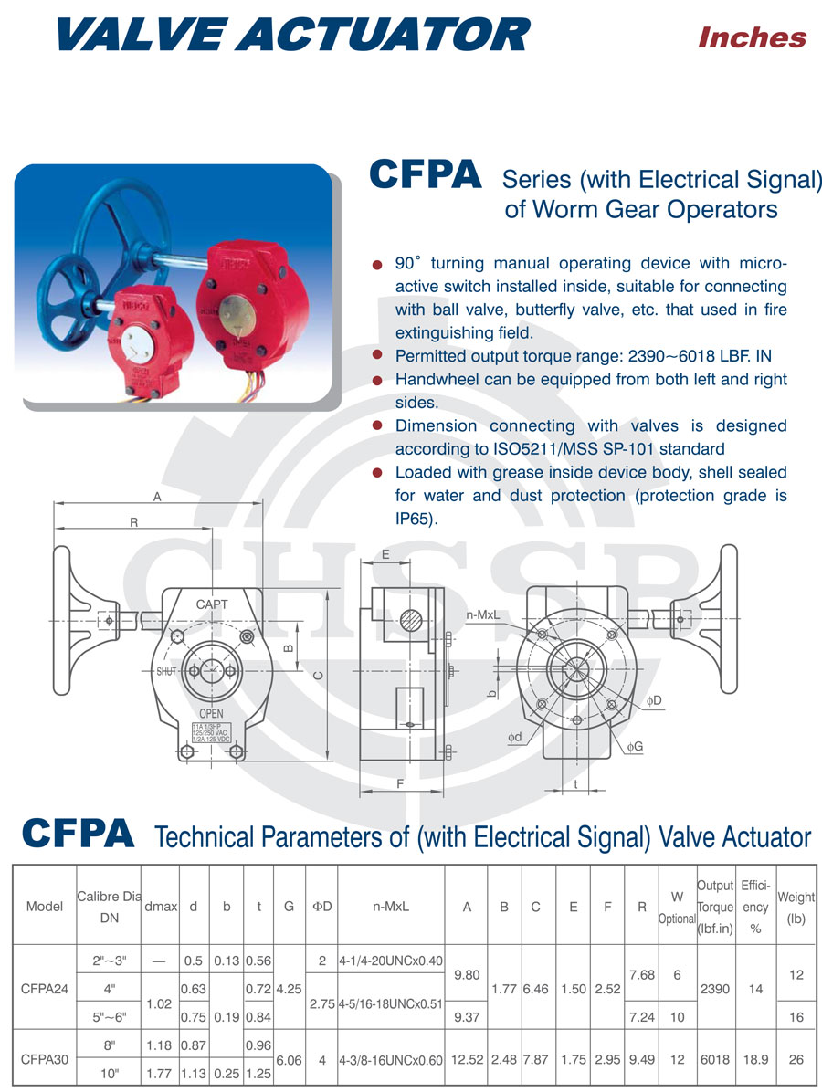 CFP系列消防型渦輪驅動器:該產品是一種帶有微動開關的90°回轉型驅動裝置,適用于球閥、蝶閥、旋塞閥
