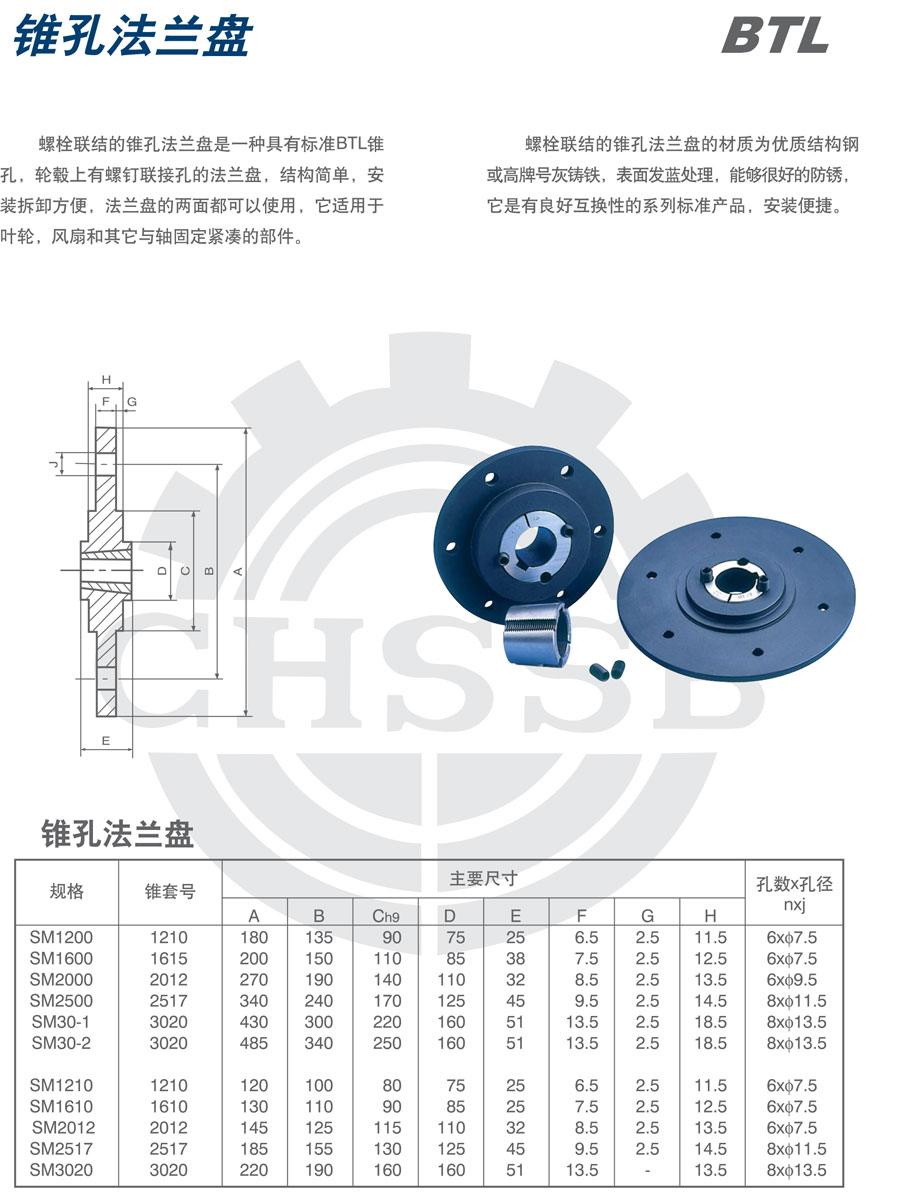 盤的兩面都可以使用,它適用于葉輪,風扇和其它與軸固定緊湊的部件。螺栓聯(lián)結的錐孔法蘭盤的材質為優(yōu)質結